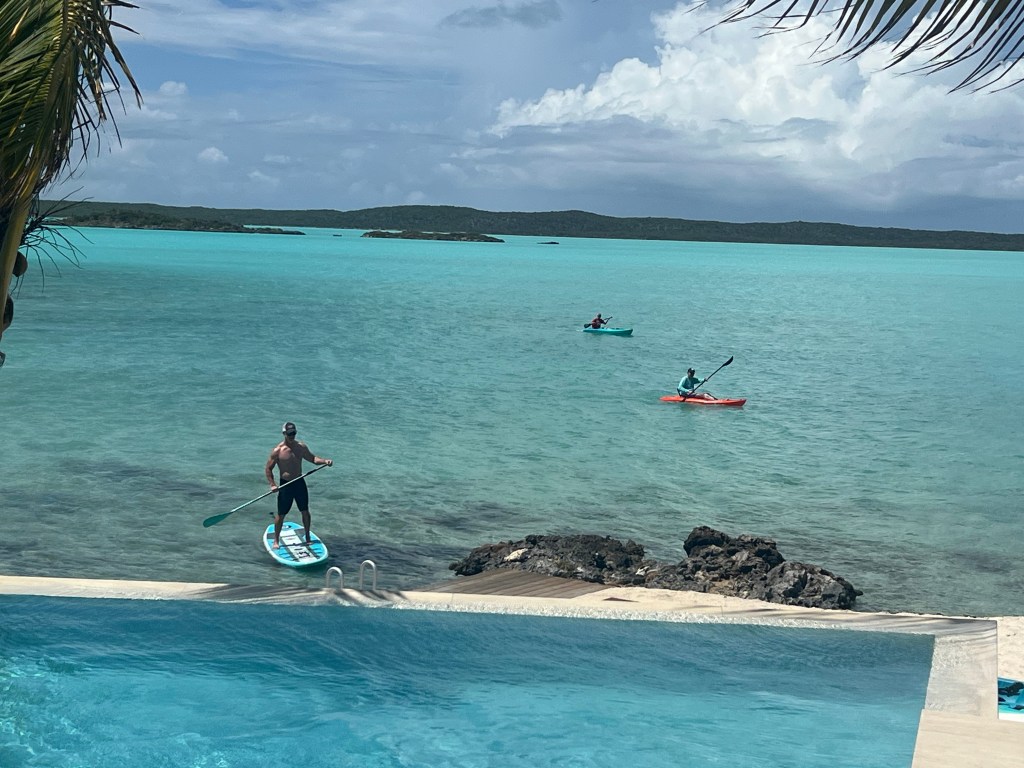 “Guest kayaking through the calm turquoise lagoon of Chalk Sound.”
